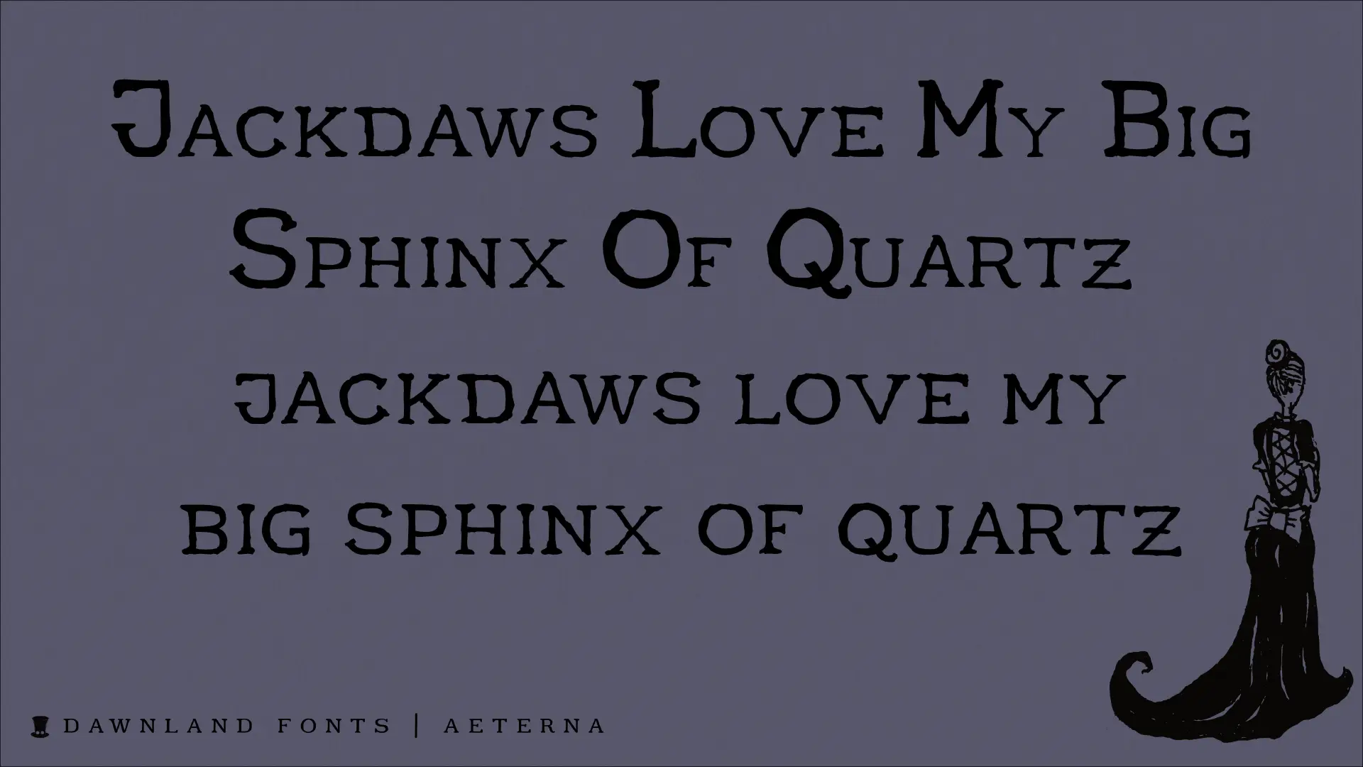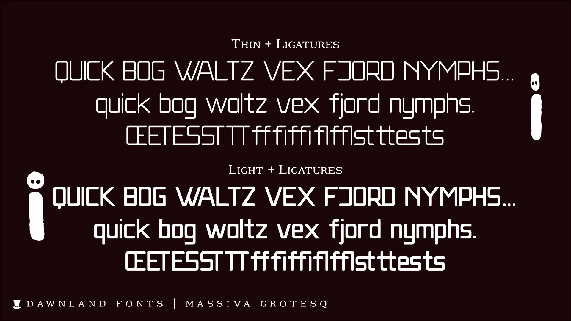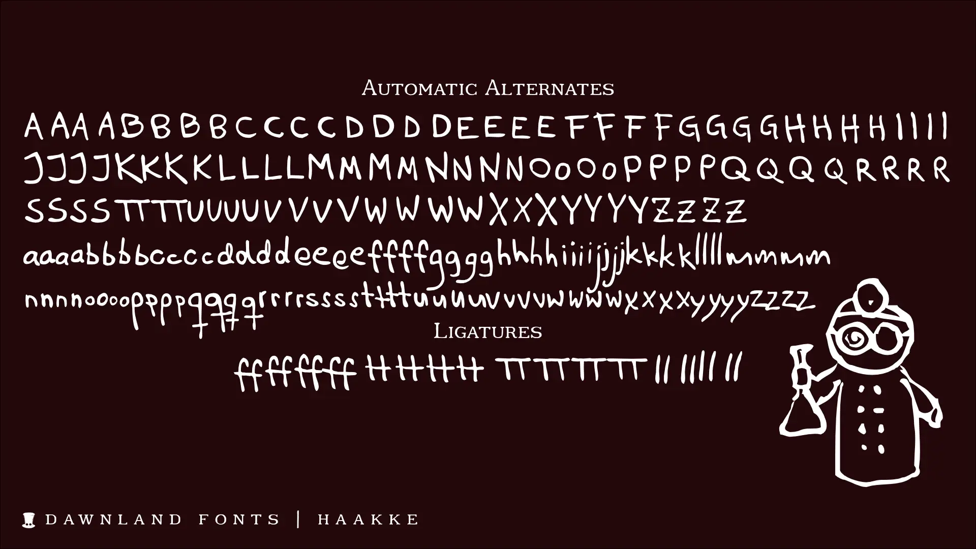 Each font consists of a 241 glyph character set with beautiful ligatures for ff ffi ffl fi fl st ts es tt ST ET TT and ES.