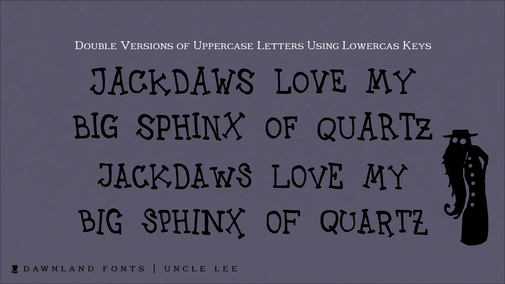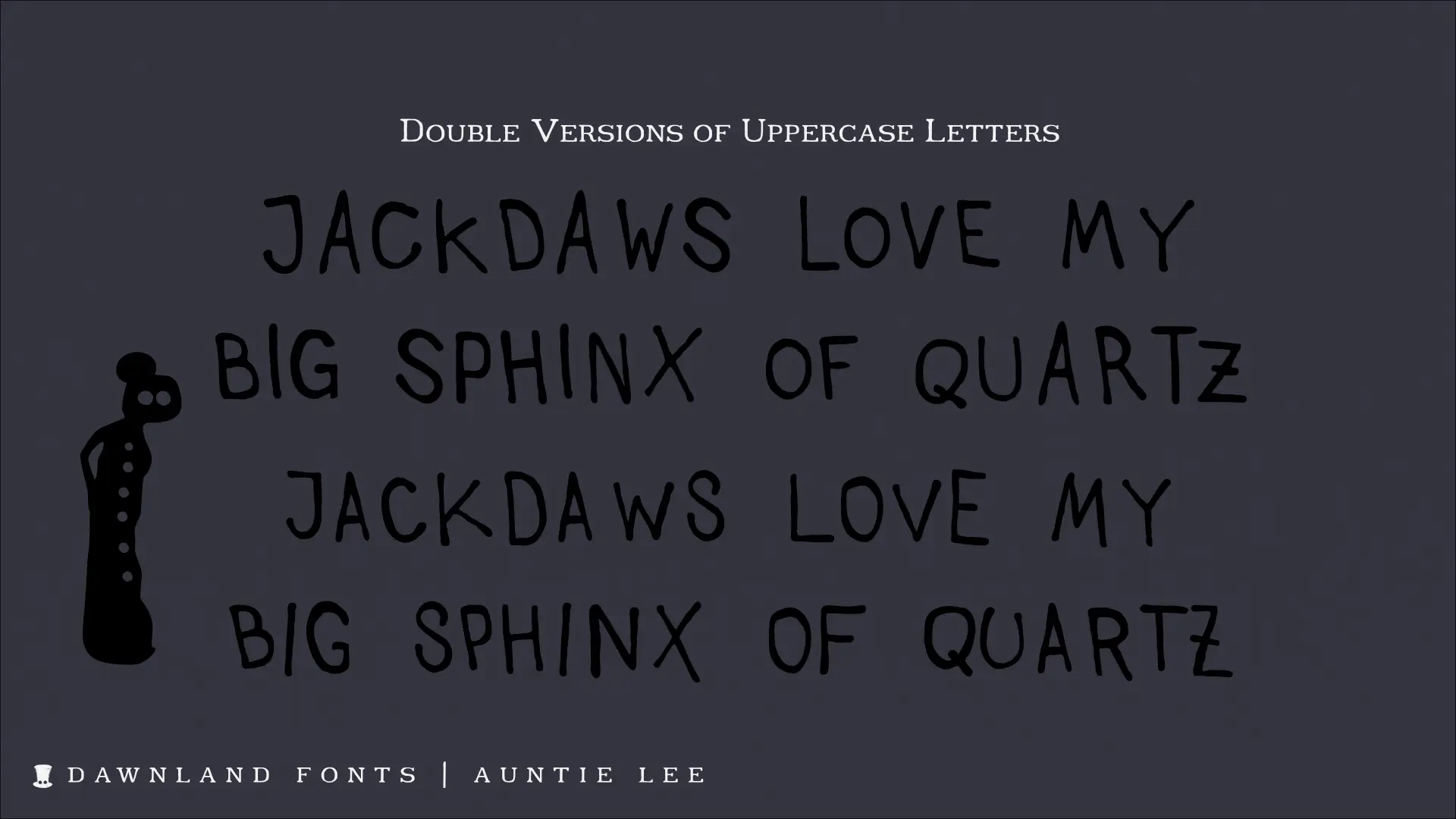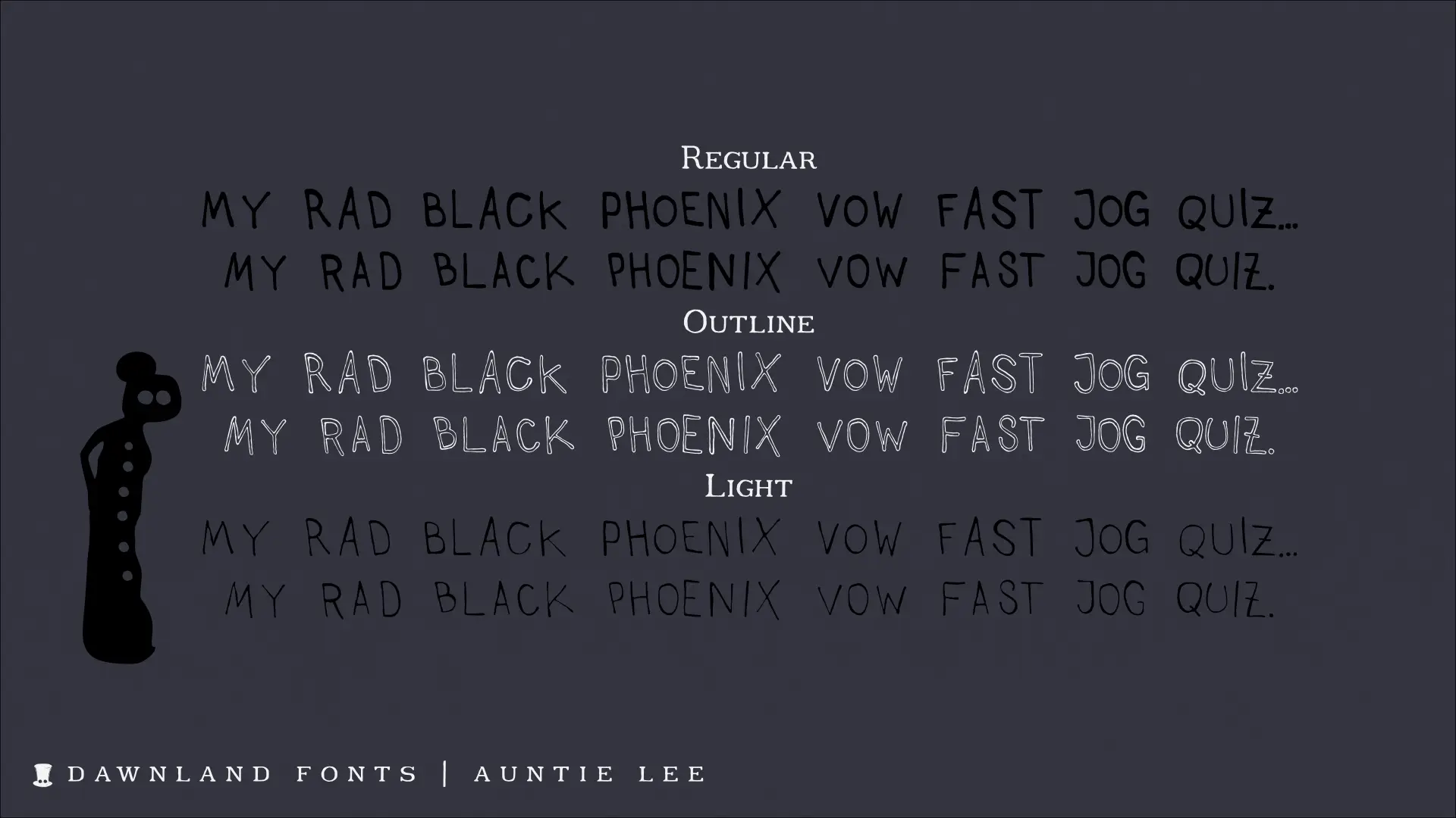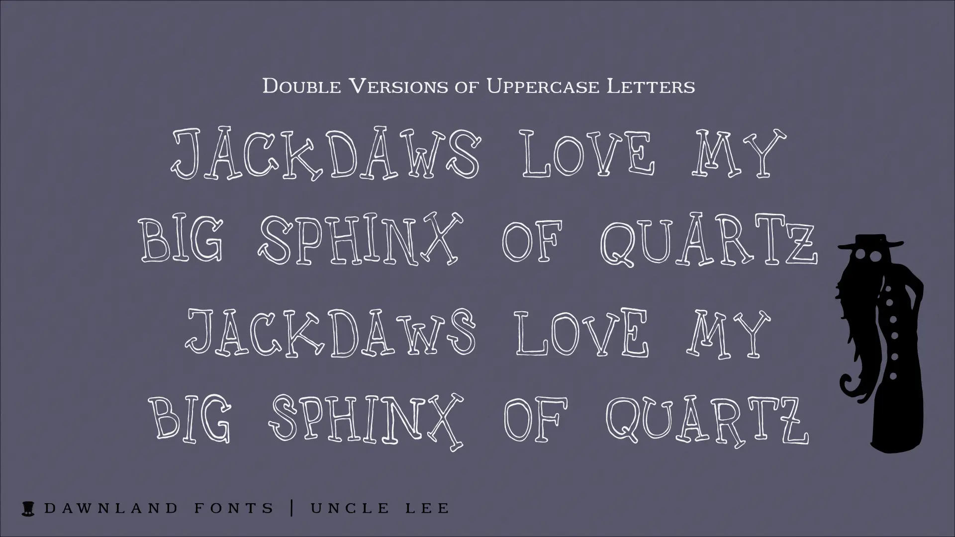 An upper-case-only font with upper-case-variants on the lower-case letters. With three happy versions – regular, outline & thin – you just can’t go wrong!