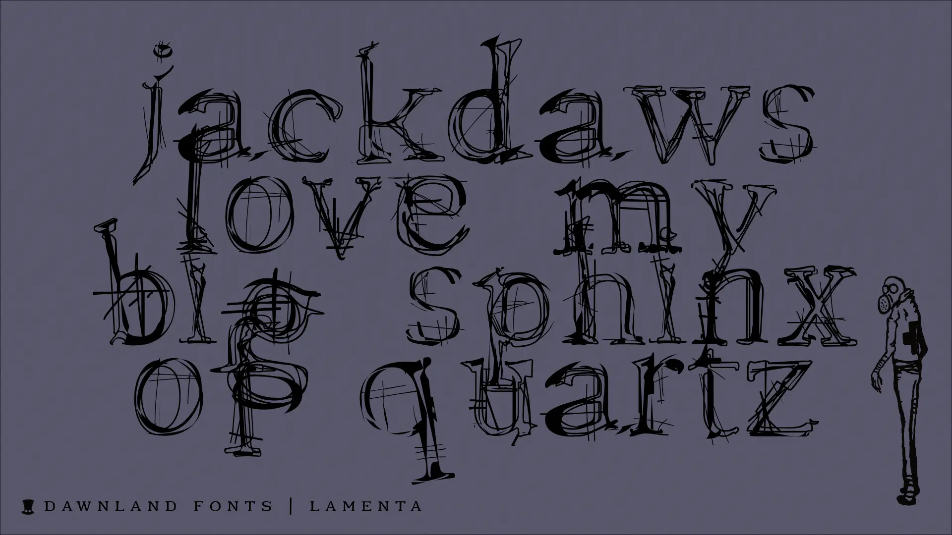 Lamenta October 30, 2018Fontsadmin Lamenta All that remains from this once so proud and glorious antiqua are steel skeletons. Destroyed. Distorted. Ruins. The main focus and usage of LamentaX are headlines, posters for event graphics and music/media/game packaging.